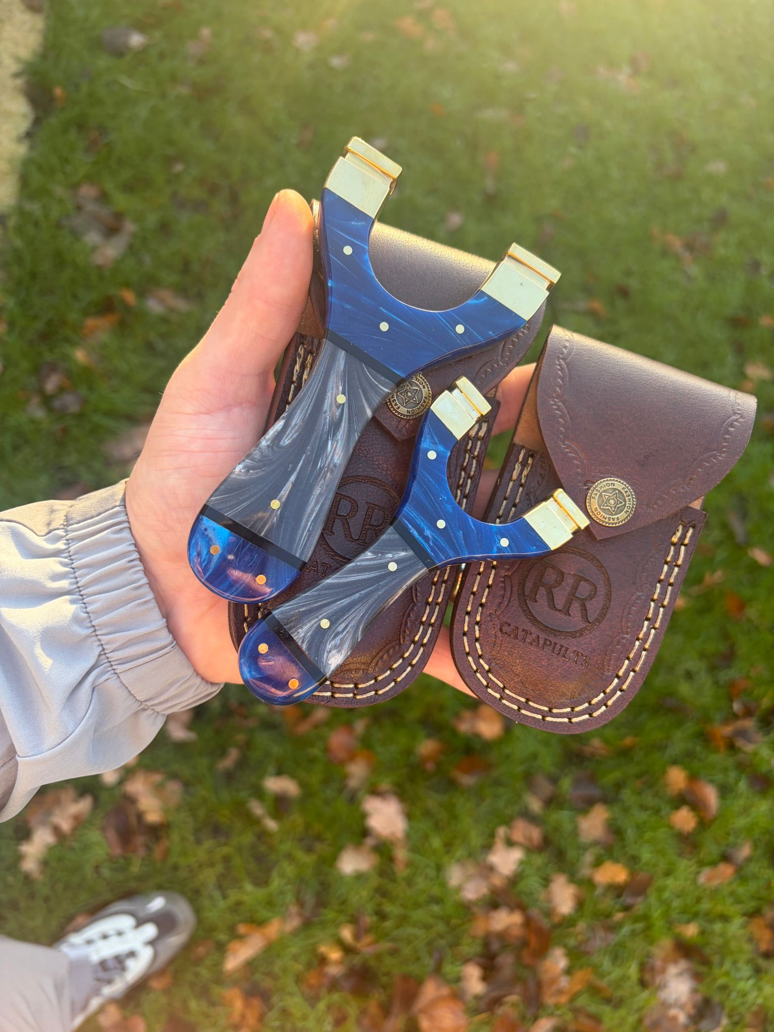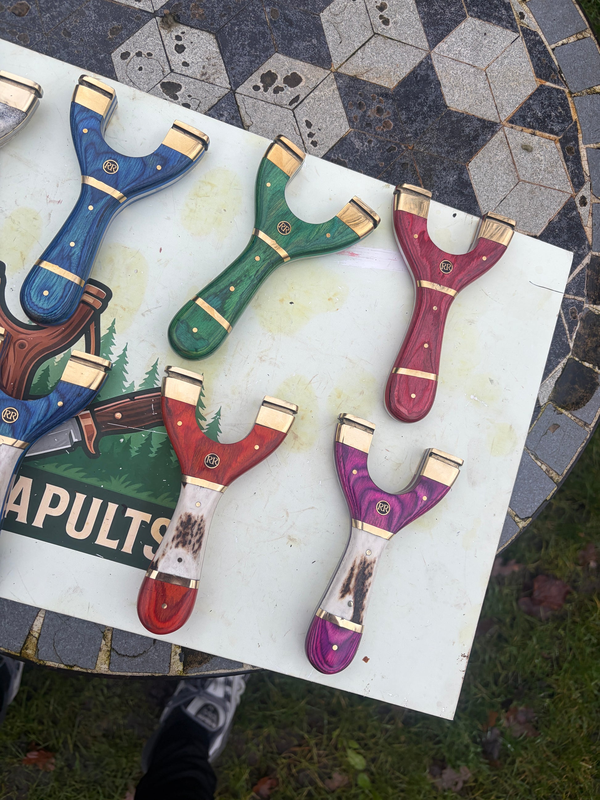 Because we utilize natural organic materials such as genuine horn, bone, and wood, no two catapults are ever exactly the same. The unique grain patterns, natural textures, and hand-finished details ensure that your slingshot is a truly unique original that cannot be replicated.